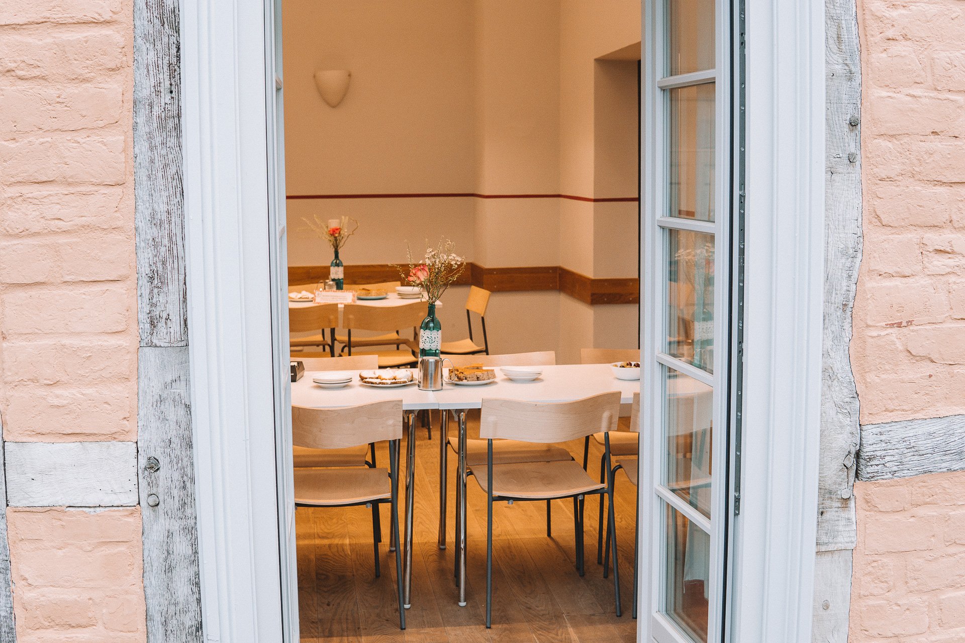 Ab 8 Uhr wird von Montag bis Freitag gemeinsam gekocht, ab 11 Uhr können alle zum Essen kommen. Zwei Essen stehen zur Wahl. Die Tische sind gedeckt mit Brot und Kuchen, damit man essen kann, ohne fragen zu müssen. Alle werden bedient. Es gibt Kaffee, Tee, Wasser und alle Speisen ohne Begrenzung. Zugangsvoraussetzungen gibt es nicht. Es kann eine Spende gegeben werden. Die Bedingungslosigkeit der Einladungen hat eine große Heterogenität sowohl der Gäste, als auch der Mitarbeitenden zur Folge. Dadurch werden Begegnungen möglich, die im Alltag kaum noch oder gar nicht mehr stattfinden. Feste Rollenzuweisungen von denen, die immer geben, und denen die immer nehmen, werden durchbrochen.